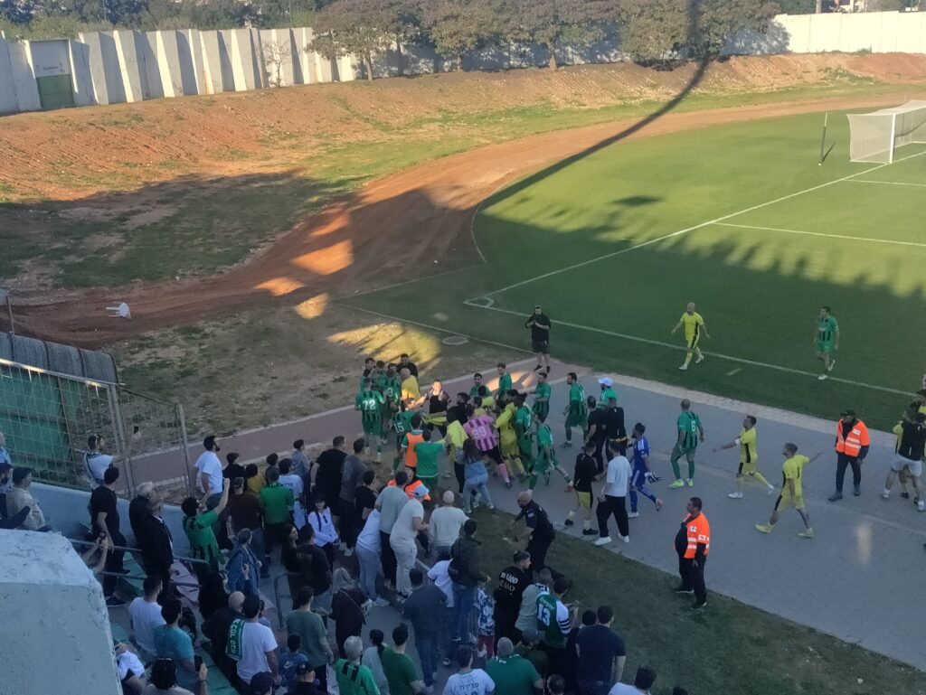 תגרת ענק בסיום המשחק בין שחקני הקבוצות. צילום: ניסים קמחי