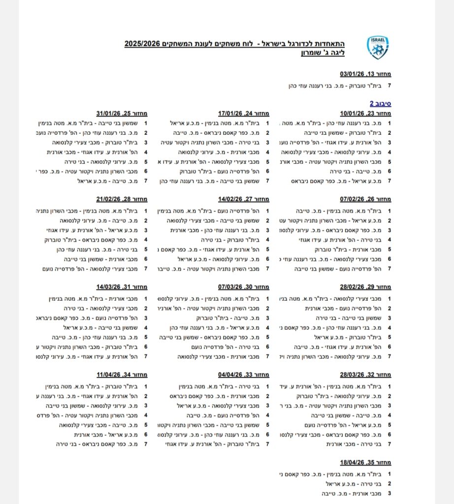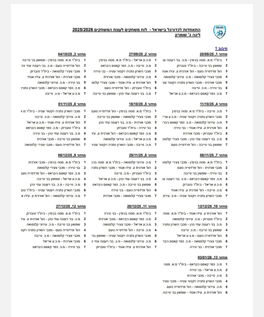 ההתאחדות לכדורגל פרסמה אחר הצהריים את לוח משחקי ליגה ג' שומרון לעונת המשחקים 2025/26 שתחל ב-20.9.