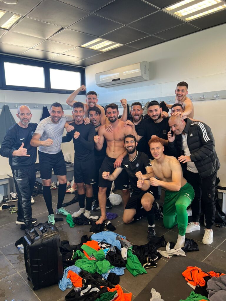 שחקני עירוני מודיעין חוגגים ניצחון ביבנה. צילום: יח"צ